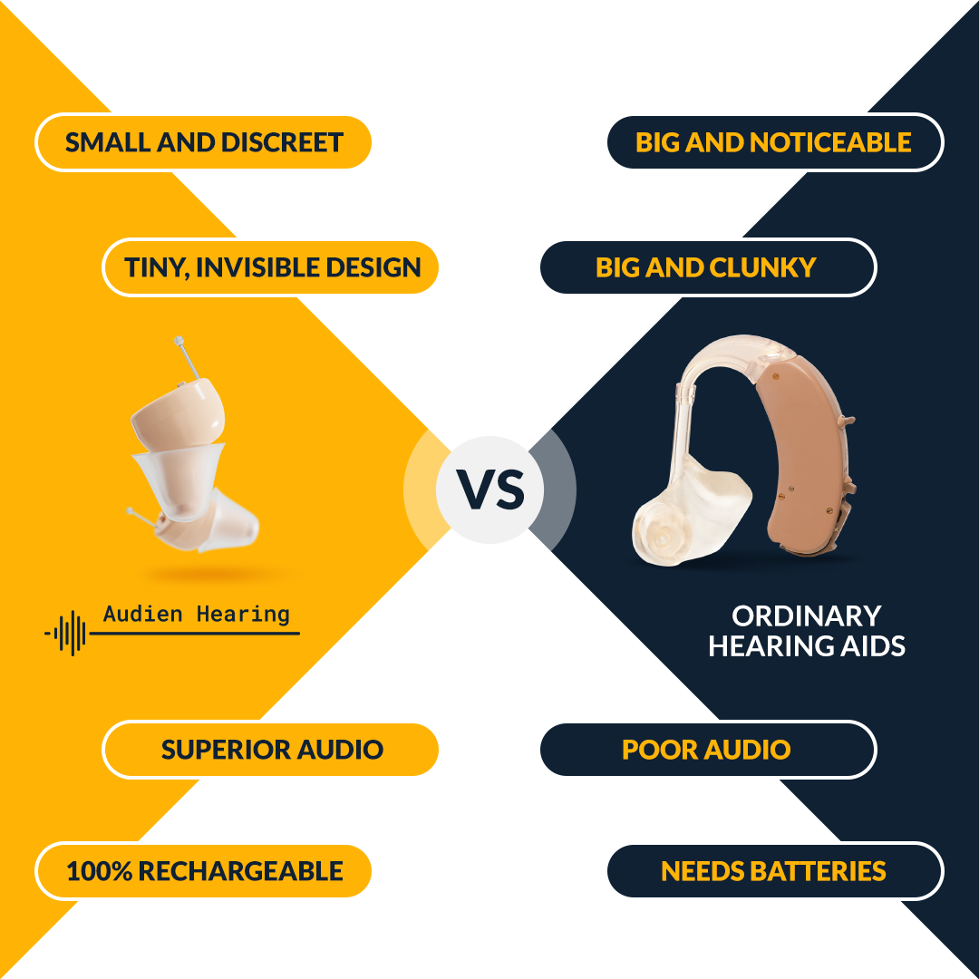 Audien Atom Pro relies on advanced technology while eliminating non-essential extras that often make other hearing aids bulky, uncomfortable, and overly expensive.