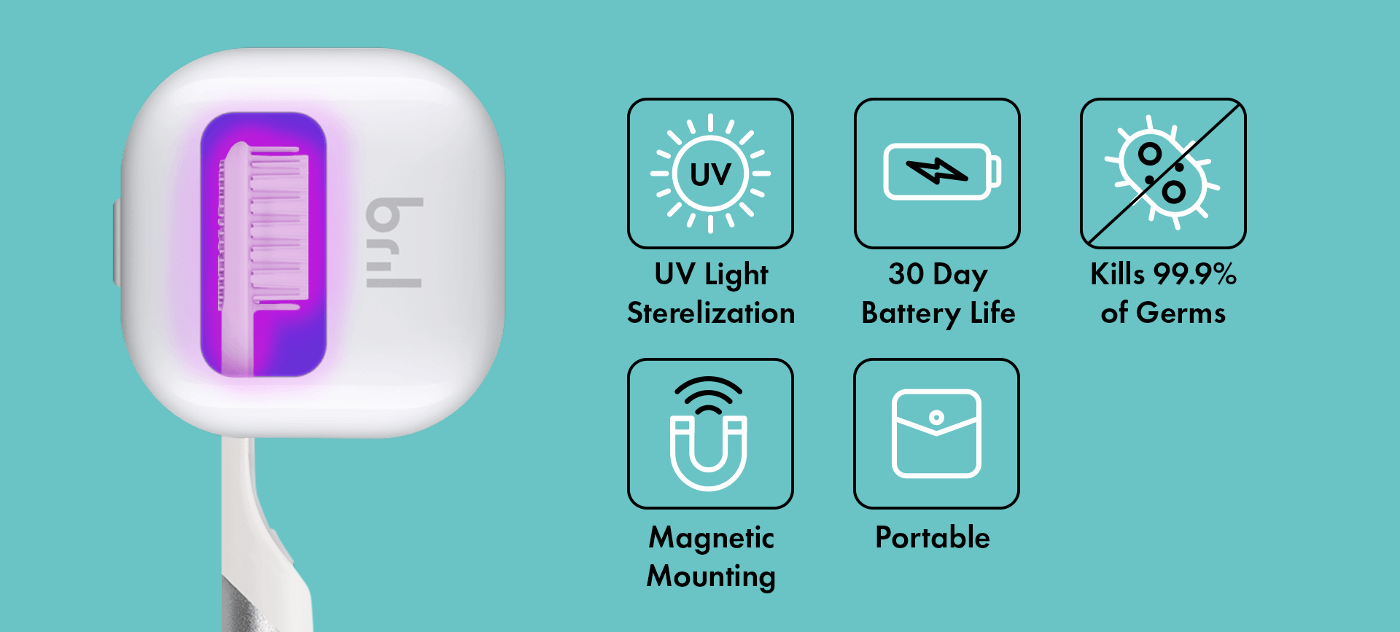 The secret behind Bril‘s effectiveness lies in its advanced UV (ultraviolet) light sterilization built directly into the case.