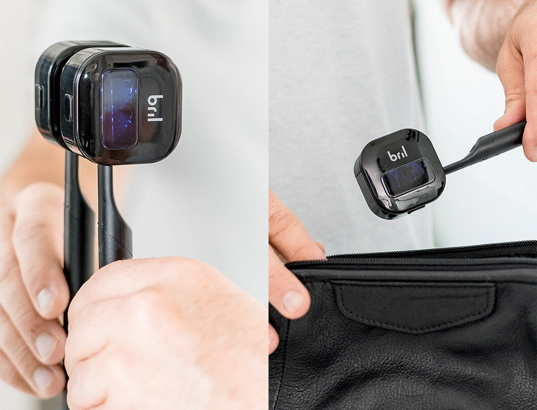 Bril (short for “Brilliant”) is a compact toothbrush case that sanitizes your toothbrush automatically after each use.