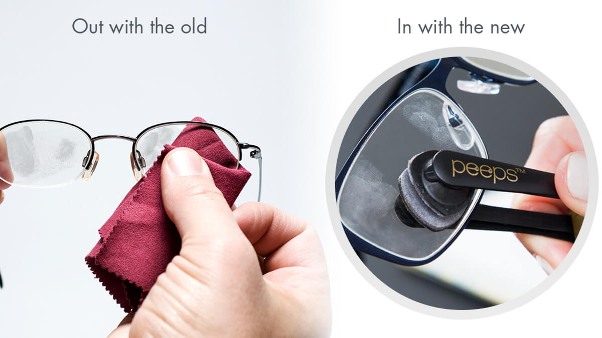 Peeps requires no sprays, solutions, or chemicals to function. It’s quick, efficient, and compatible with all types of eyewear!